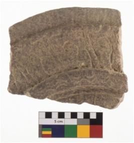 | Description / विवरण | A circular shaped fragment of sculpture. It has incised decorations on it. |