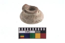 | Description / विवरण | A partially broken specimen of a red ware small round teracotta bobbin shaped ear stud.It consists of two terracotta rings placed one top of the other and joined with a slight waist . It is made of fine clay and well fired.The rings are of unequal sizes. It also has a tubular perforation in the centre |