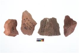 | Provenance / उद्गम/क्षेत्र | Bhimbetka, District-Raisen, BTK-1973, 1975, Trench-IIIF23, F2, E4, E2, L-N A, Depth-211-220, 96-100, 111-115, Artifact No.-1284, 561, 412, 1180, Date-11 5 1973, 28 3 1975, 30 3 1975, 11 5 1975 |