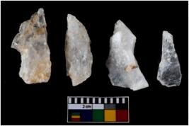 | Description / विवरण | There are n-4 of intact utilized flakes made up of Quartz. Some of them have bulge of percussion and some are flat flakes. |