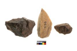 | Description / विवरण | All three scrapers are made on end flakes. |