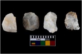 | Description / विवरण | There are n-4 of intact utilized flakes made up of Quartz. Some of them have bulge of percussion and some are flat flakes. |