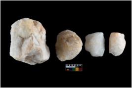 | Description / विवरण | There are n-4 cores. All are made up of quartz. All of them are intact fluted cores without any trace of crested ridge flakes. |