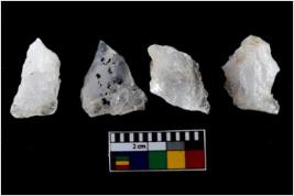 | Description / विवरण | There are n-4 of intact utilized flakes made up of Quartz. Some of them have bulge of percussion and some are flat flakes. |