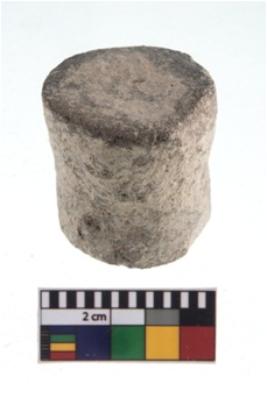 | Description / विवरण | A partially broken specimen of a small rounded teracotta concave pully shaped ear stud.It has solid straight body with slightly raised circular ends. |