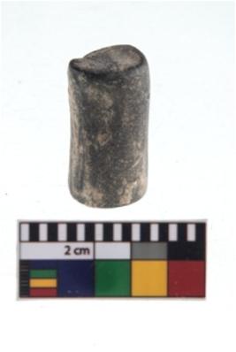 | Description / विवरण | A partially broken specimen of a small rounded teracotta concave pully shaped ear stud.It has solid straight body with slightly raised circular ends. |
