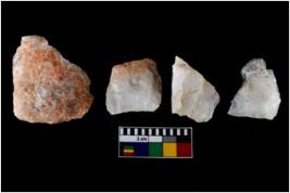 | Description / विवरण | There are n-4 of intact utilized flakes made up of Quartz. Some of them have bulge of percussion and some are flat flakes. |