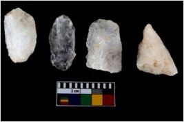 | Description / विवरण | There are n-4 of intact utilized flakes made up of Quartz. Some of them have bulge of percussion and some are flat flakes. |