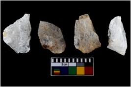 | Description / विवरण | There are n-4 of intact utilized flakes made up of Quartz. Some of them have bulge of percussion and some are flat flakes. |