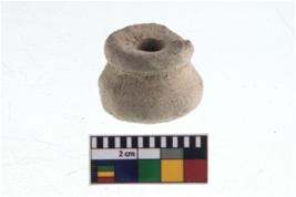 | Description / विवरण | A partially broken specimen of a red ware small round teracotta bobbin shaped ear stud.It consists of two terracotta rings placed one top of the other and joined with a slight waist . It is made of fine clay and well fired.The rings are of unequal sizes. It also has a tubular perforation in the centre |