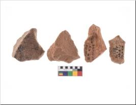 | Provenance / उद्गम/क्षेत्र | Bhimbetka, District-Raisen, Madhya Pradesh, BTK-1975, Trench-IIIF23, F2,E2,S2, Artifact No.-1191, 1296,1327,1563 Date-12 5 75. |