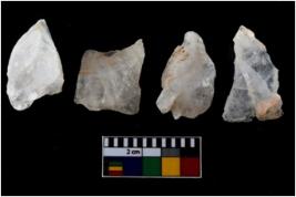 | Description / विवरण | There are n-4 of intact utilized flakes made up of Chert. Some of them have bulge of percussion, some are flat flakes and few are retouched. |