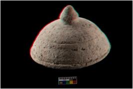 | Description / विवरण | The specimen is a complete domical lid. It has a pointed truncated knob. The lid is hollow from the inside. It is a coarse red ware and has been covered with lime coating. |