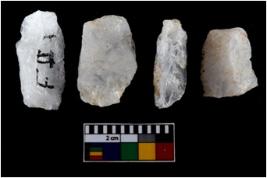 | Description / विवरण | There are n-4 of intact utilized flakes made up of Chert. Some of them have bulge of percussion, some are flat flakes and few are retouched. |