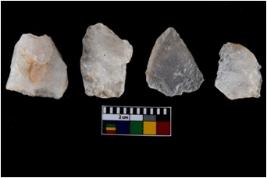 | Description / विवरण | There are n-4 of intact utilized flakes made up of Chert. Some of them have bulge of percussion, some are flat flakes and few are retouched. |