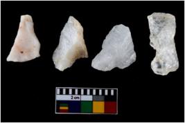 | Description / विवरण | There are n-4 of intact utilized flakes made up of Chert. Some of them have bulge of percussion, some are flat flakes and few are retouched. |