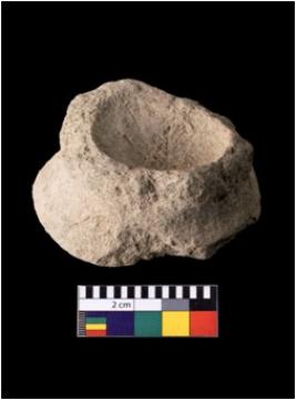 | Description / विवरण | A partially broken specimen of a small terracotta lamp. It is made of red ware, medium fabric, ill-fired. |