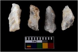 | Description / विवरण | There are n-4 of intact utilized flakes made up of Chert. Some of them have bulge of percussion, some are flat flakes and few are retouched. |