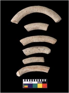 | Description / विवरण | Partially broken speciemns of n - 6 teracoota bangles circular in section and without any decoration. All these are made of well - levigated clay and are fine section , well fired under the oxidiizing condition . |
