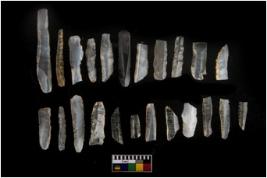 | Description / विवरण | THERE ARE TOTAL N-23 BLADES IN THE ASSAMBLANGE . ALL OF THEM ARE MADE OF CHALCEDONY WHICH HAS RETOUCHED PENKNIFE BLUNTED BACK USED AND UNUSED REJUVANATING PARRAALE SIDED FLAKE BLADES . |