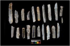 | Description / विवरण | THERE ARE TOTAL N-21 BLADES IN THE ASSAMBLANGE . ALL OF THEM ARE MADE OF CHALCEDONY WHICH HAS RETOUCHED PENKNIFE BLUNTED BACK USED AND UNUSED REJUVANATING PARRAALE SIDED FLAKE BLADES . |