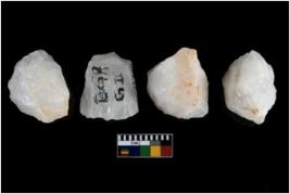 | Description / विवरण | There are n-4 of cores. All are made up of Quartz. All of them are intact fully fluted cores without any trace of crested ridge flakes. |
