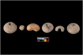 | Description / विवरण | A set of n-06 terracotta beads . Among these n-01 is an irregular rounded bead with tubelar perforation nither truely globular nor even oblate. It is rounded but irregular in shape and asymmetrical. N- 02 are arecanut beads with the shape of the betel nut and these are having tubelar perforation, These are grey in colour. rest n- 03 beads are partially broken in shape. |