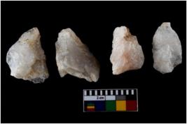 | Description / विवरण | There are n-4 of intact utilized flakes made up of Chert. Some of them have bulge of percussion, some are flat flakes and few are retouched. |