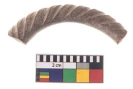 | Description / विवरण | The specimen is a fragment of a terracotta bangle, circular in section. Its inner surface is smooth and the outer surface has incised rope design. |