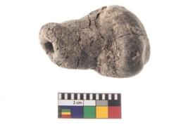 | Description / विवरण | The specimen is a terracotta bead. It has a uneven shape and uneven surface. But it has a perforation going through its center. |