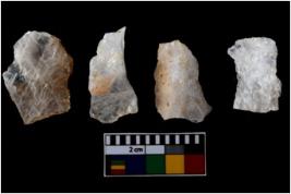 | Description / विवरण | There are n-4 of intact utilized flakes made up of Chert. Some of them have bulge of percussion, some are flat flakes and few are retouched. |