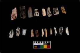 | Description / विवरण | THERE ARE TOTAL N- 22 MICROLITHS IN THE ASSEMBLANGE . OUT OF THEM N-8 ARE MADE 0F QUARTZ AND N-16 ARE MADE OF CHERT . OUT OF WHICH FEW ARE RETOUCHED PENKNIFE BLUNTED BACK AND REST ARE DEBITAGES . |