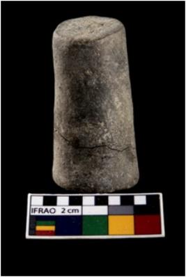 | Description / विवरण | A partially broekn specimen of a terracotta weight. It is cylindrical in shape and its height is greater than with the with of its base |