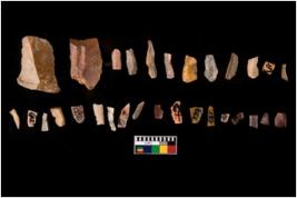 | Description / विवरण | THERE ARE TOTAL N- 30 MICROLITHS IN THE ASSEMBLANGE . AMONG THEM N-1 IS MADE OF CHALCEDONY AND N-29 ARE MADE OF CHERT . OUT OF WHICH N-2 ARE CHERT FLAKES WITH SCARS AND FEW ARE RETOUCHED ALL ALONG BOTH SIDE , SOME ARE TRIAANGLE BLADES AND REST ARE DEBITAGES . |