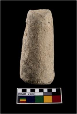 | Description / विवरण | A complete specimen of a medium sized terracotta cylindrical object with elongated body, truncated end, rough surface and a flat end. It is devoid of any kind of wash. It is grey ware, medium in fabric and well fired. . Probably a stopper |