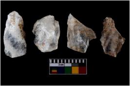 | Description / विवरण | There are n-4 of intact utilized flakes made up of Chert. Some of them have bulge of percussion, some are flat flakes and few are retouched. |