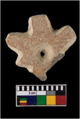 | Description / विवरण | A terracotta pendant with central perforation. |