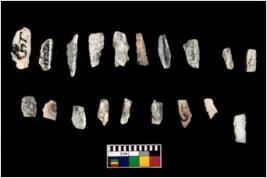 | Description / विवरण | THERE ARE TOTAL N- 20 MICROLITHS IN THE ASSEMBLANGE . ALL ARE MADE OF QUARTZ . OUT OF WHICH FEW ARE RETOUCHED ALL ALONG BOTH SIDE AND BLUNTED BACK BLADES AND REST ARE DEBITAGES . |