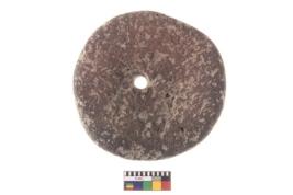 | Description / विवरण | The specimen is a terracotta disc, made by grinding or cutting in Jorwe pottery. The surface of the dics has a slight curve. A single perforation goes through its center. |