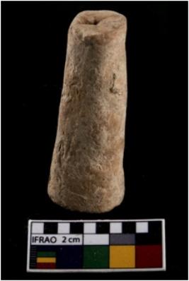 | Description / विवरण | Acomplete specimen of a medium sized terracotta cylindrical object with elongated body, rough surface ,truncated base and a flat base. It is devoid of any kind of wash. It is red ware,fine fabric and well fired. It s appex part is broken. Probably Stopper. |