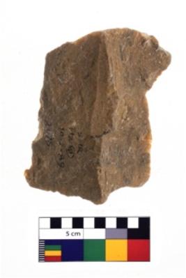| Description / विवरण | Its an end flake with previous flake scars on its dorsal surface. Has sharp cutting edge at both the lateral side. |