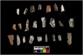 | Description / विवरण | THERE ARE TOTAL N- 25 MICROLITHS IN THE ASSEMBLANGE . AMONG THEM N-1 IS MADE OF JASPER , N-1 ARE MADE OF CHALCEDONY AND N-9 ARE MADE OF CHERT AND N-14 ARE MADE OF QUARTZ . OUT OF WHICH FEW ARE RETOUCHED ALL ALONG THE SIDES AND BLUNTED BACK BLADES . SOME ARE TRIANGLE BLADES AND REST ARE DEBITAGES . |