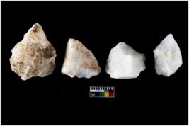 | Description / विवरण | There are n-4 of intact utilized flake cores made up of Quartz. Some of them have bulge of percussion and some are flat flakes. |