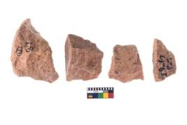 | Provenance / उद्गम/क्षेत्र | Bhimbetka, District-Raisen, BTK-, Trench-IIIF23, L5, L6, H3, H5, L-4, Depth-56-60, 61-65, 96-100, Artifact No.-87, 276, 32, 156, Date-N A |