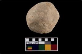 | Description / विवरण | A complete specimen of red ware teracotta sling ball with rough surface, probably a birdshot |