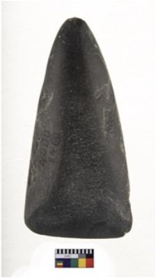| Description / विवरण | Fine triangular axe, small size, sharp edge, all over finely polished on both surfaces, tool bears small flake scars. |