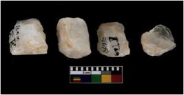| Description / विवरण | There are n-4 of cores. All are made up of Quartz. All of them are intact fully fluted cores without any trace of crested ridge flakes. |