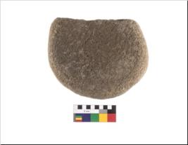 | Description / विवरण | A partly broken circular rubber stone. |