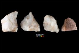 | Description / विवरण | There are n-4 of intact utilized flake cores made up of Quartz. Some of them have bulge of percussion and some are flat flakes. |
