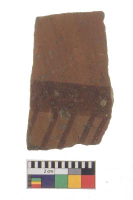 | Description / विवरण | Specimen of red ware with decorative geometric Linear Pattern painting. |